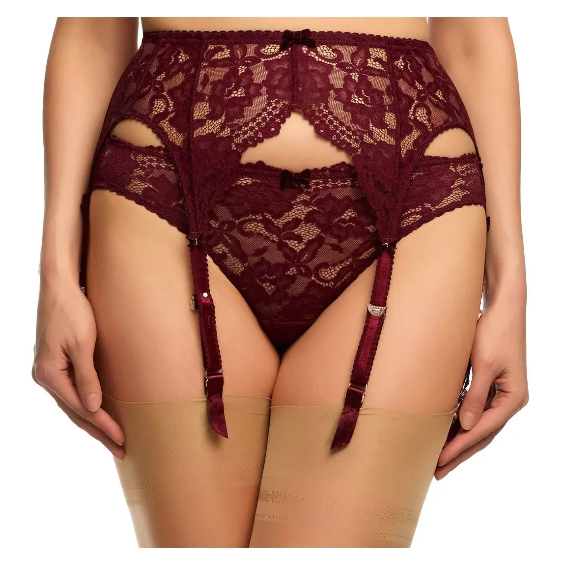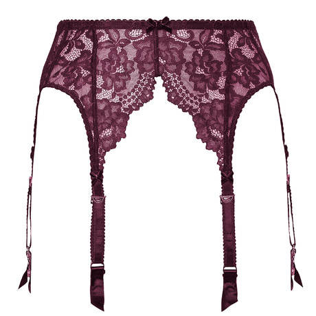 Cora Suspender - named for the legendary Lingerie Addict, Cora Harrington - has a full lace front with deep lace scallops along the hip. 6 garter attachments for additional stability and function.