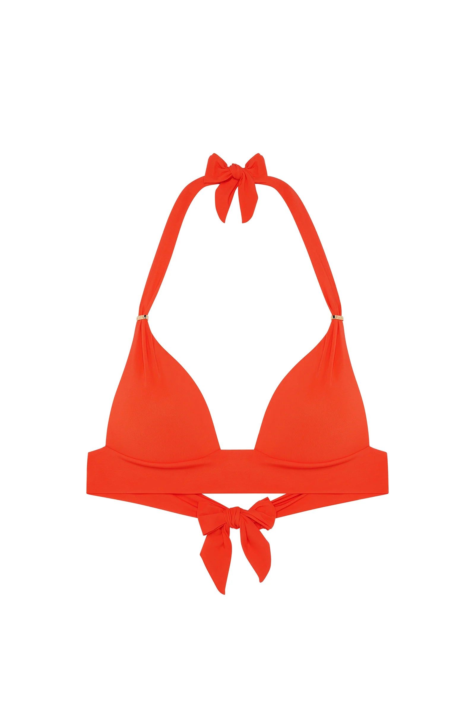 The triangle bikini top DIVA is a signature piece of the House PAIN DE SUCRE. Its push-up effect enhances the neckline. The wide ties tied around the neck and at the back ensure support and comfort. A band under the breasts gives this model a subtly refined sportswear touch and elegantly underlines the bustline.