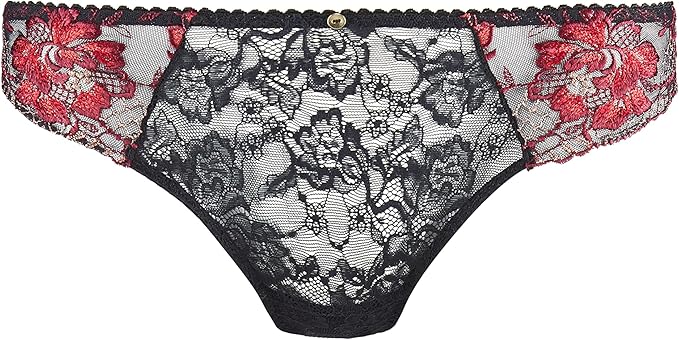 With its interplay of sheer accents, shades and materials, the Melodie D'Ete Italian brief combines the comfort of a full-coverage cut with the femininity of sensual embroidery, with intense red flowers blooming across the hips, enhanced by delicate, sexy lace that really highlights the small of the back.