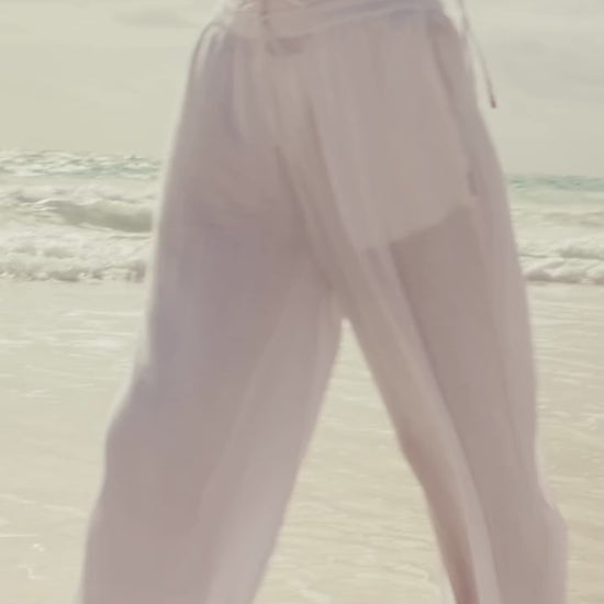 Arrive at the beach in style with the Sunset Beach Trouser in White by leading Australian swimwear design house Sea Level. These beach pants are made from a breathable cheesecloth cotton and feature side pockets with a wide leg and drawstring waist for ultimate comfort.